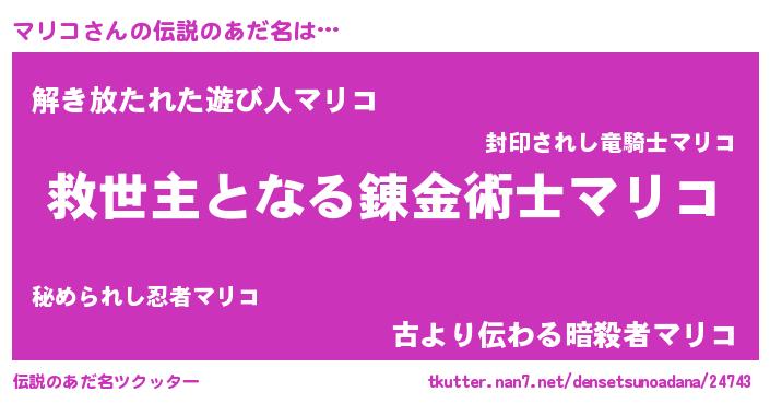 | 女子向けラノベタイトル風あだ名 | 『死神マリコの再婚』 |