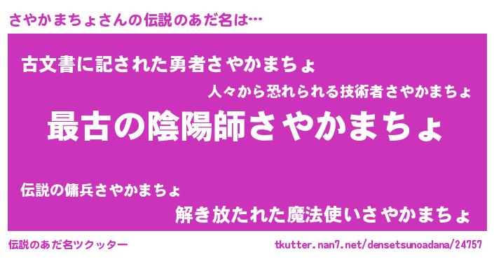 | ファンタジー風あだ名 | 『エターナルサヤカマチョー』 |