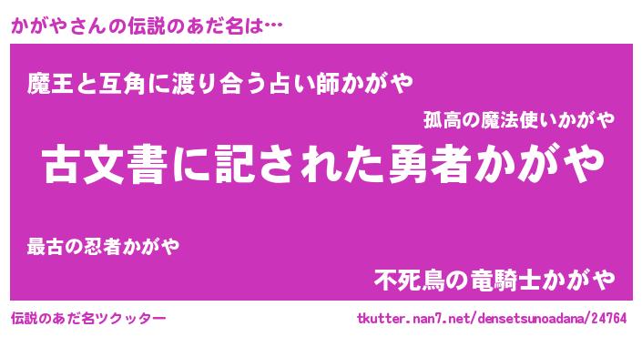 | ヘコむあだ名 | 『かがや(遠い目)』『かがにゅー』 |
