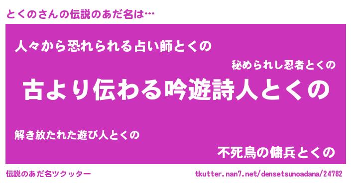 | ヒーロー風カッコイイあだ名 | 『ネオトクノ』『慈愛の使者とくの』 |