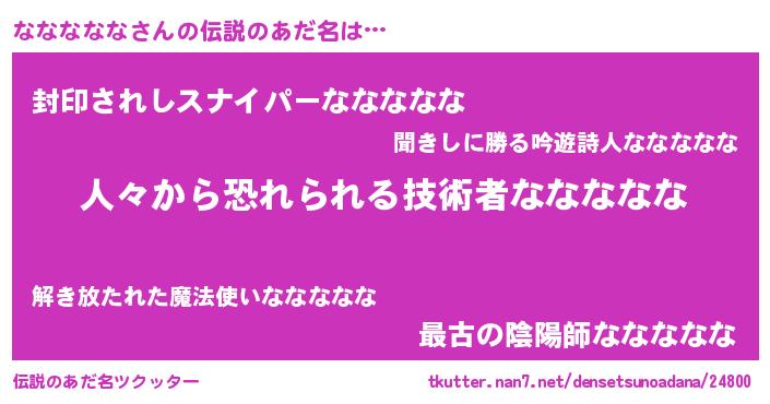 | 胡散臭い通販商品みたいなあだ名 | 『100人中100人が認めたマグネット磁石…その名も「ななななな」』 |