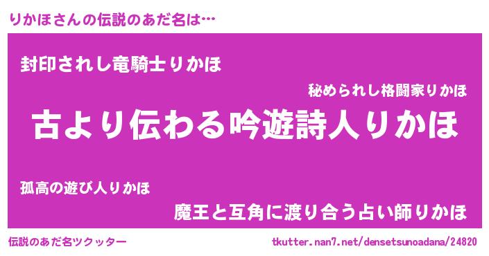 | 意味不明あだ名 | 『住所不定無職りかほ(1歳)』『自称りかほ』 |
