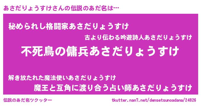 | 意味不明あだ名 | 『自称あさだりょうすけ』 |