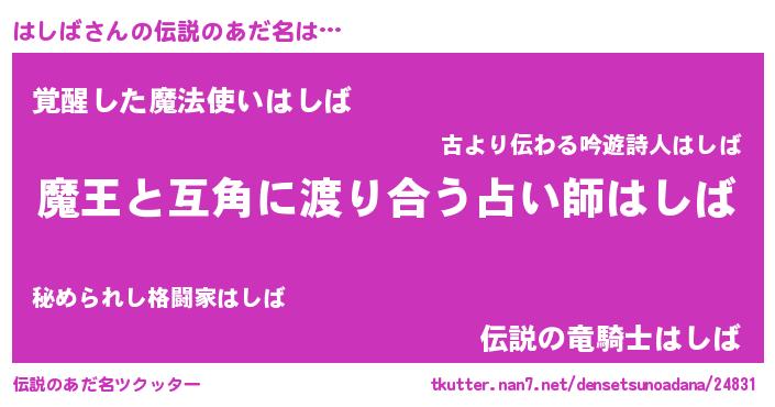| ヒーロー風カッコイイあだ名 | 『愛の使者はしば』『究極戦士ハシバ』 |