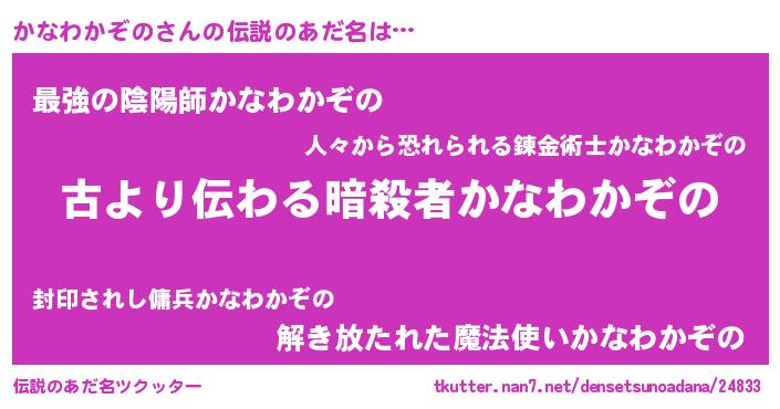 | 胡散臭い通販商品みたいなあだ名 | 『来世でも幸せになれる健康食品…その名も「かなわかぞの」』 |