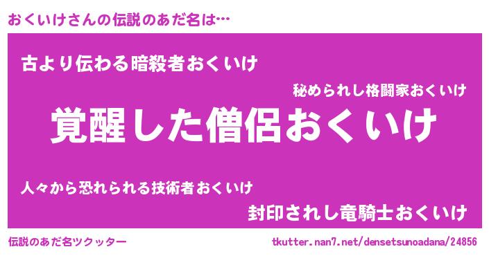 | 男性向けラノベタイトル風あだ名 | 『おくいけの嫁は女の子じゃないと思った?』 |