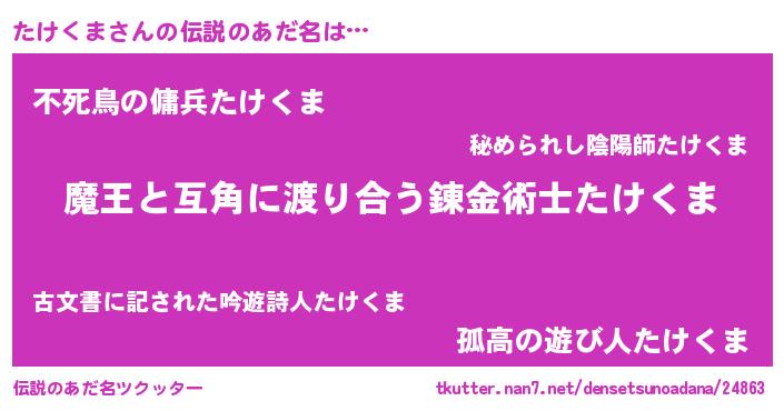 | ヒーロー風カッコイイあだ名 | 『友情の使者たけくま』『黄金騎士タケ』 |
