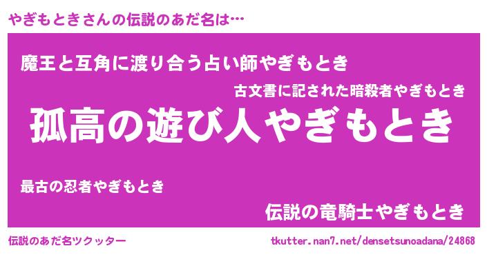| 意味不明あだ名 | 『とにかく怪しいやぎもとき』 |
