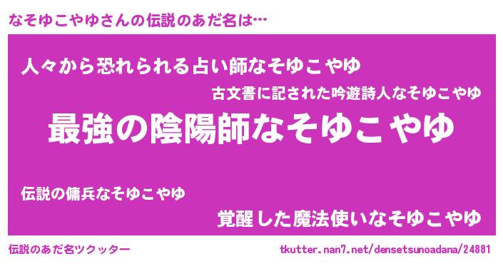 | 意味不明あだ名 | 『なそゆこやゆフォーエバー』 |