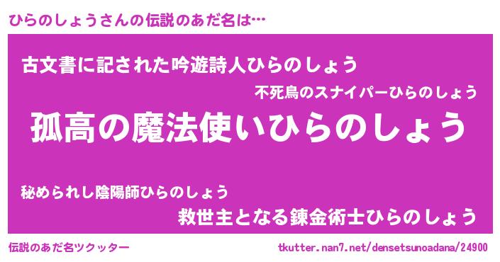 意味不明あだ名 | 『とにかく怪しいひらのしょう』 |