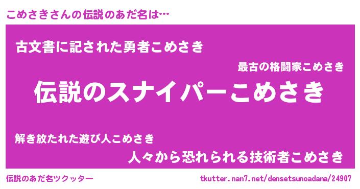 | ヒーロー風カッコイイあだ名 | 『超時空戦士コメサキ』『仮面コメダー』 |
