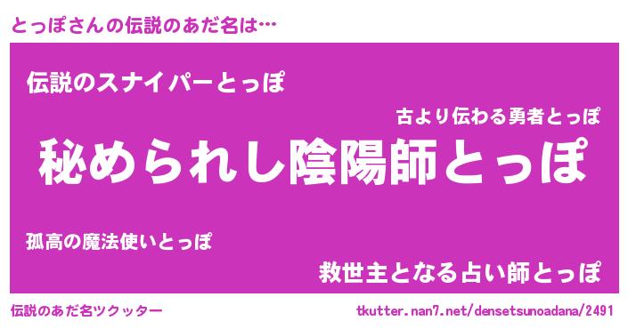 | ファンタジー風あだ名 | 『カークトッラー』『エターナルトッポー』 |