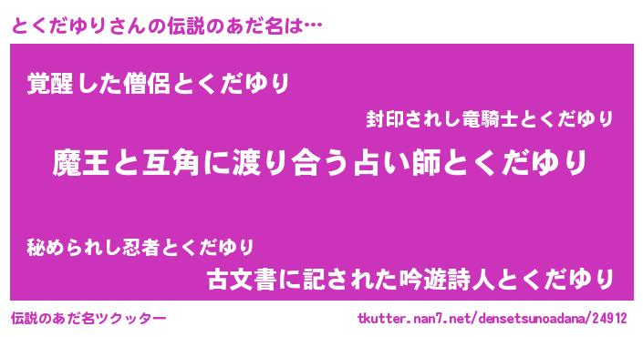 | ヒーロー風カッコイイあだ名 | 『仮面トクダー』『天空の使者とくだゆり』 |