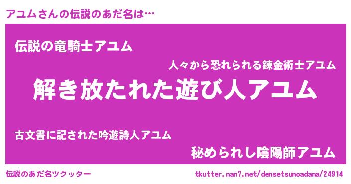 | 意味不明あだ名 | 『とにかく怪しいアユム』 |