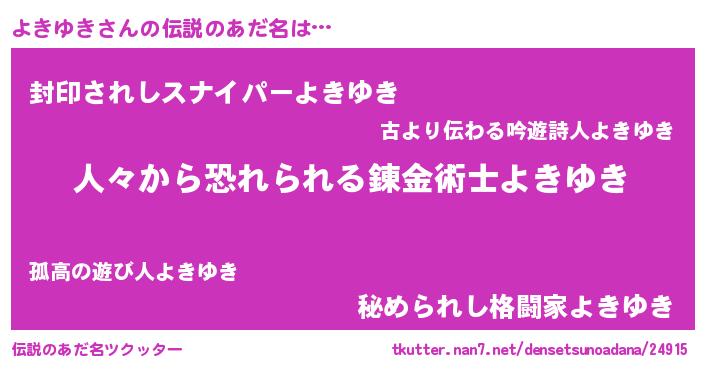 | ヒーロー風カッコイイあだ名 | 『正義の使者よきゆき』『ネオヨキユキ』 |