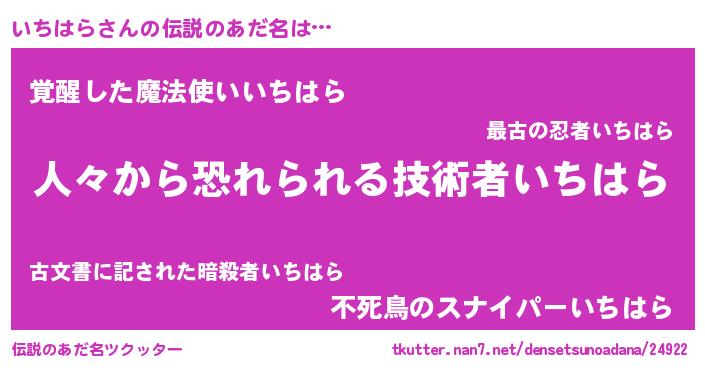 | 意味不明あだ名 | 『住所不定無職いちはら(6歳)』 |