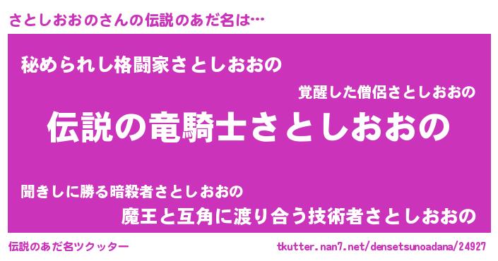 | 男性向けラノベタイトル風あだ名 | 『サトシオオノスレイヤー』 |