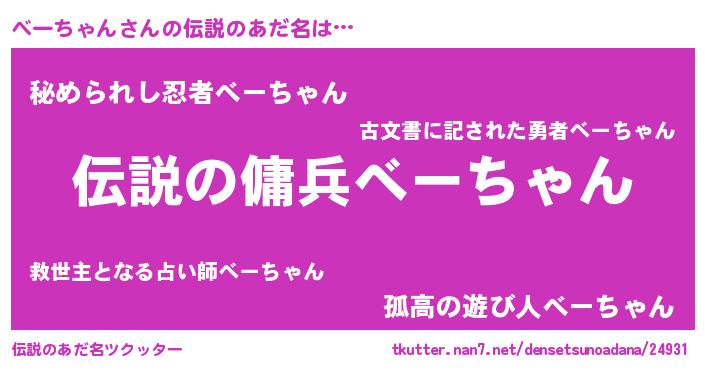 | ヒーロー風カッコイイあだ名 | 『ウルトラ戦士ベーチャン』 |