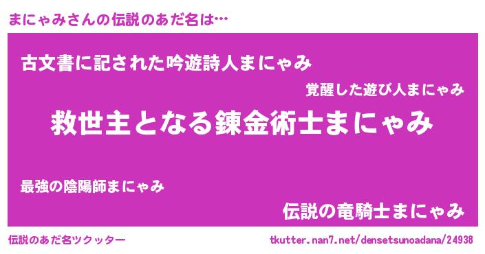 | ヘコむあだ名 | 『まにゃみ(震え声)』『まににー』 |