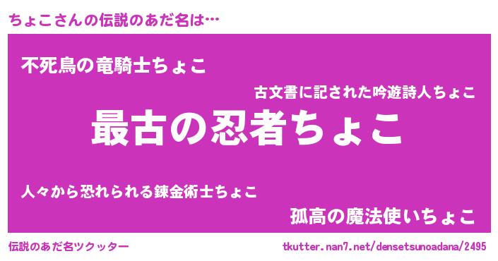 | 胡散臭い通販商品みたいなあだ名 | 『世界が平和になる高級そうな壺…その名も「ちょこ」』 |