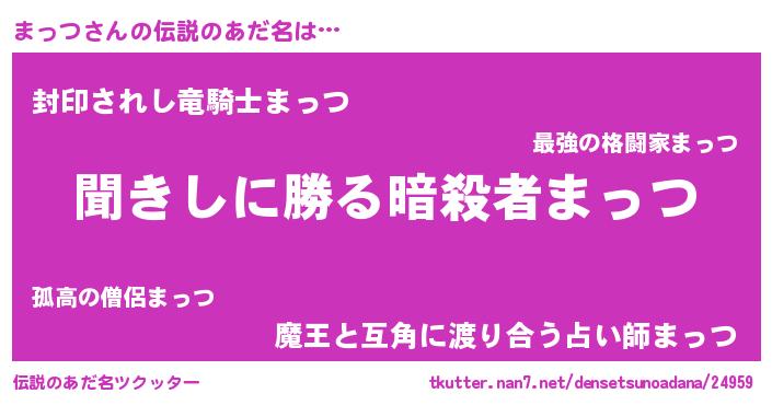 | 意味不明あだ名 | 『自称まっつ』『永久保存まっつ』 |