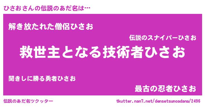 | 男性向けラノベタイトル風あだ名 | 『この素晴らしい世界にひさおを!』 |