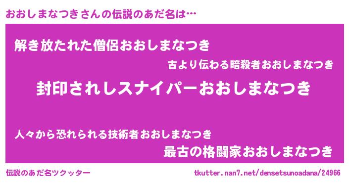 | 胡散臭い通販商品みたいなあだ名 | 『億万長者になれる霊験あらたかなお札…その名も「おおしまなつき」』 |