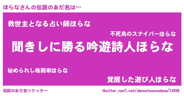 | ヒーロー風カッコイイあだ名 | 『ネオホラナ』『天空の使者ほらな』 |