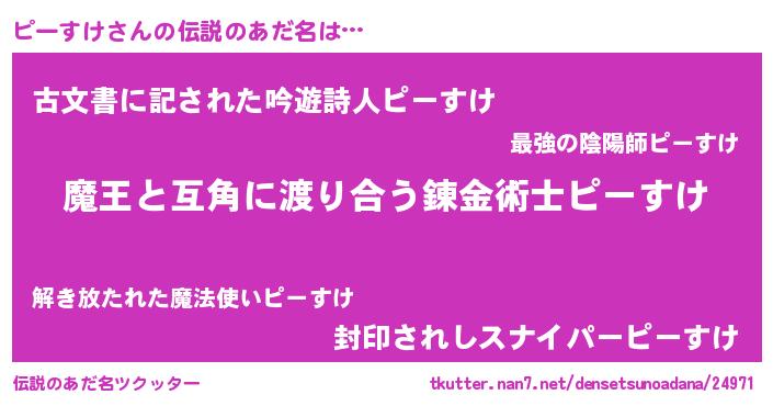 | 女子向けラノベタイトル風あだ名 | 『闇のピーすけ』『ピーすけ恋絵巻』 |