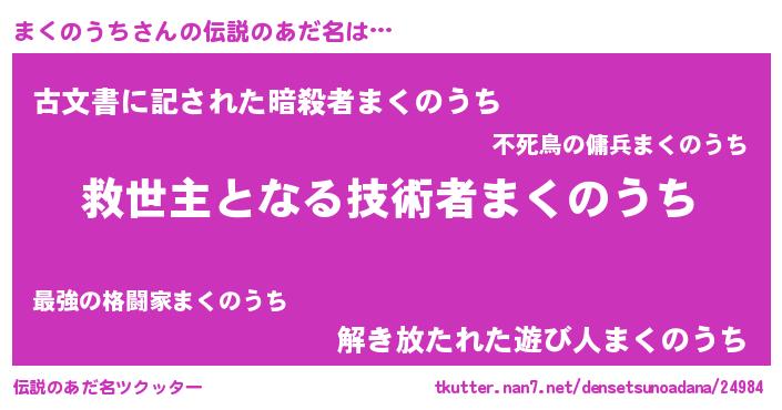 | ヒーロー風カッコイイあだ名 | 『慈愛の使者まくのうち』『銀牙騎士マク』 |