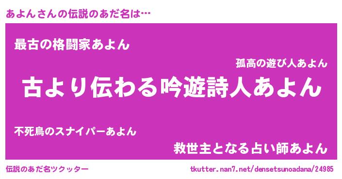 | 意味不明あだ名 | 『永久保存あよん』『あよんフォーエバー』 |