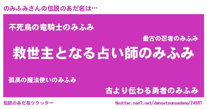 | 女子向けラノベタイトル風あだ名 | 『のみふみストレイドッグス』 |
