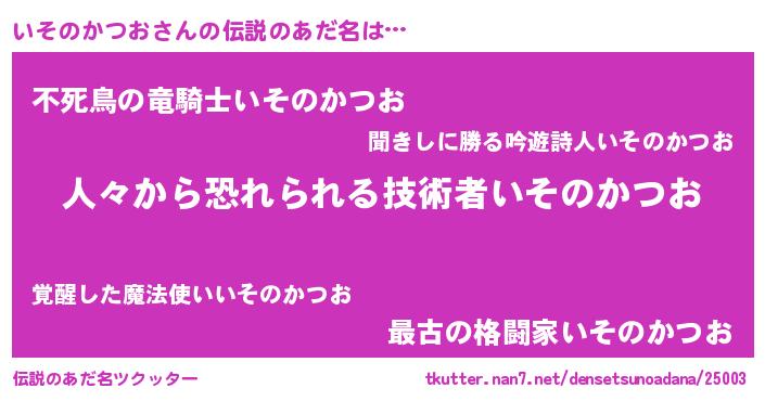 | ヒーロー風カッコイイあだ名 | 『正義の使者いそのかつお』 |