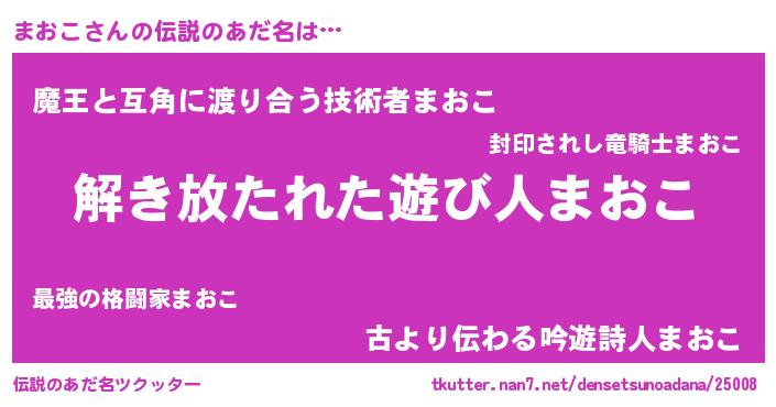 | 意味不明あだ名 | 『住所不定無職まおこ(71歳)』『自称まおこ』 |