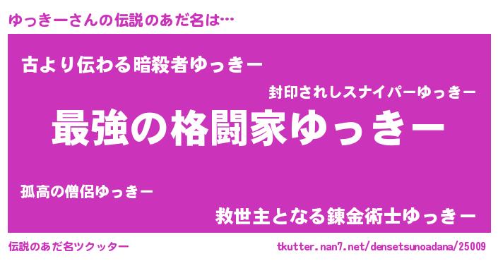 | ファンタジー風あだ名 | 『エターナルユッキーー』『ゼユットゥ』 |