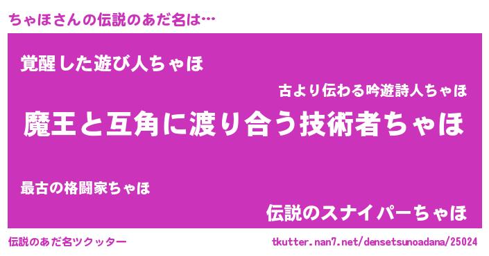 | 意味不明あだ名 | 『自称ちゃほ』『住所不定無職ちゃほ(86歳)』 |