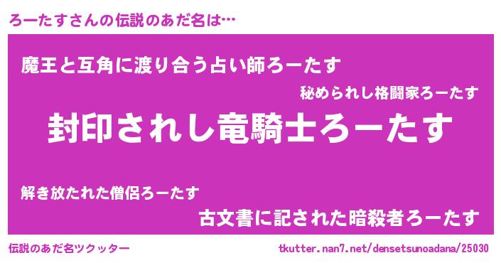 | 男性向けラノベタイトル風あだ名 | 『ろーたすに滅ぼされるだけの簡単なお仕事です』 |