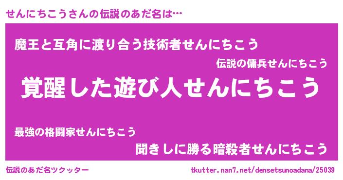 | 男性向けラノベタイトル風あだ名 | 『せんにちこうの嫁は女の子じゃないと思った?』 |