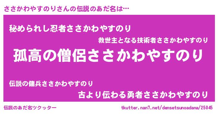 | 料理風あだ名 | 『ささかわやすのりごはん』 |