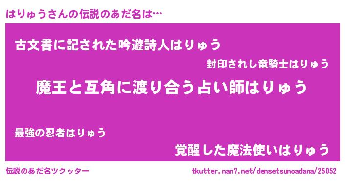 | 意味不明あだ名 | 『住所不定無職はりゅう(14歳)』 |