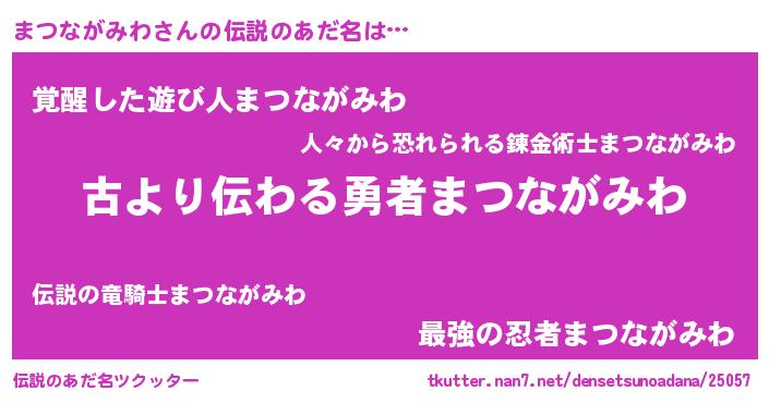 | 意味不明あだ名 | 『永久保存まつながみわ』 |