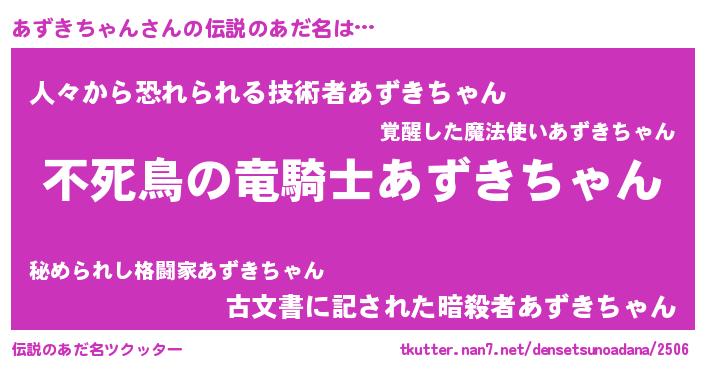 | 女子向けラノベタイトル風あだ名 | 『あずきちゃん姫と円卓の騎士』 |