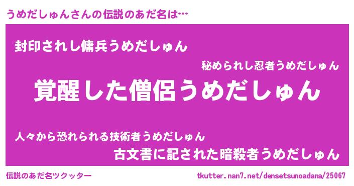 | ヒーロー風カッコイイあだ名 | 『天弓騎士ウメ』『スーパーウメダシュン』 |