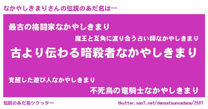 | 男性向けラノベタイトル風あだ名 | 『転生したらなかやしきまりだった件』 |