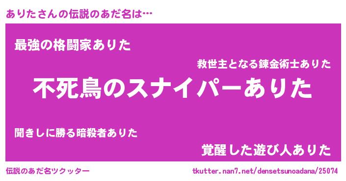 | 胡散臭い通販商品みたいなあだ名 | 『モテモテ間違いなし霊験あらたかなお札…その名も「ありた」』 |