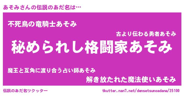 | ヒーロー風カッコイイあだ名 | 『ウルトラあそみマン』『仮面アソダー』 |