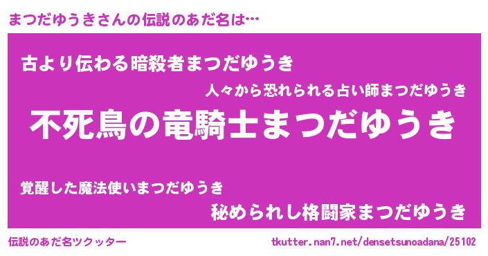 | 男性向けラノベタイトル風あだ名 | 『まつだゆうきに滅ぼされるだけの簡単なお仕事です』 |