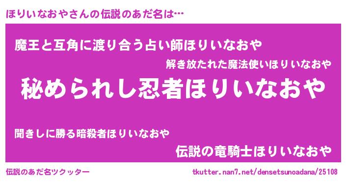 | 意味不明あだ名 | 『ほりいなおやフォーエバー』 |