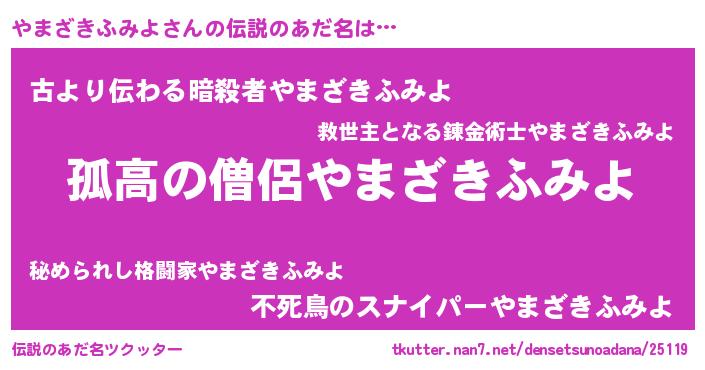| ヘコむあだ名 | 『やまっ子』『やまざきふみよ(笑)』 |