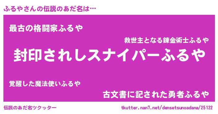 | 胡散臭い通販商品みたいなあだ名 | 『あなたにだけ特別に提供する世界で10本だけ現存している希少なブランデー…その名も「ふるや」』 |